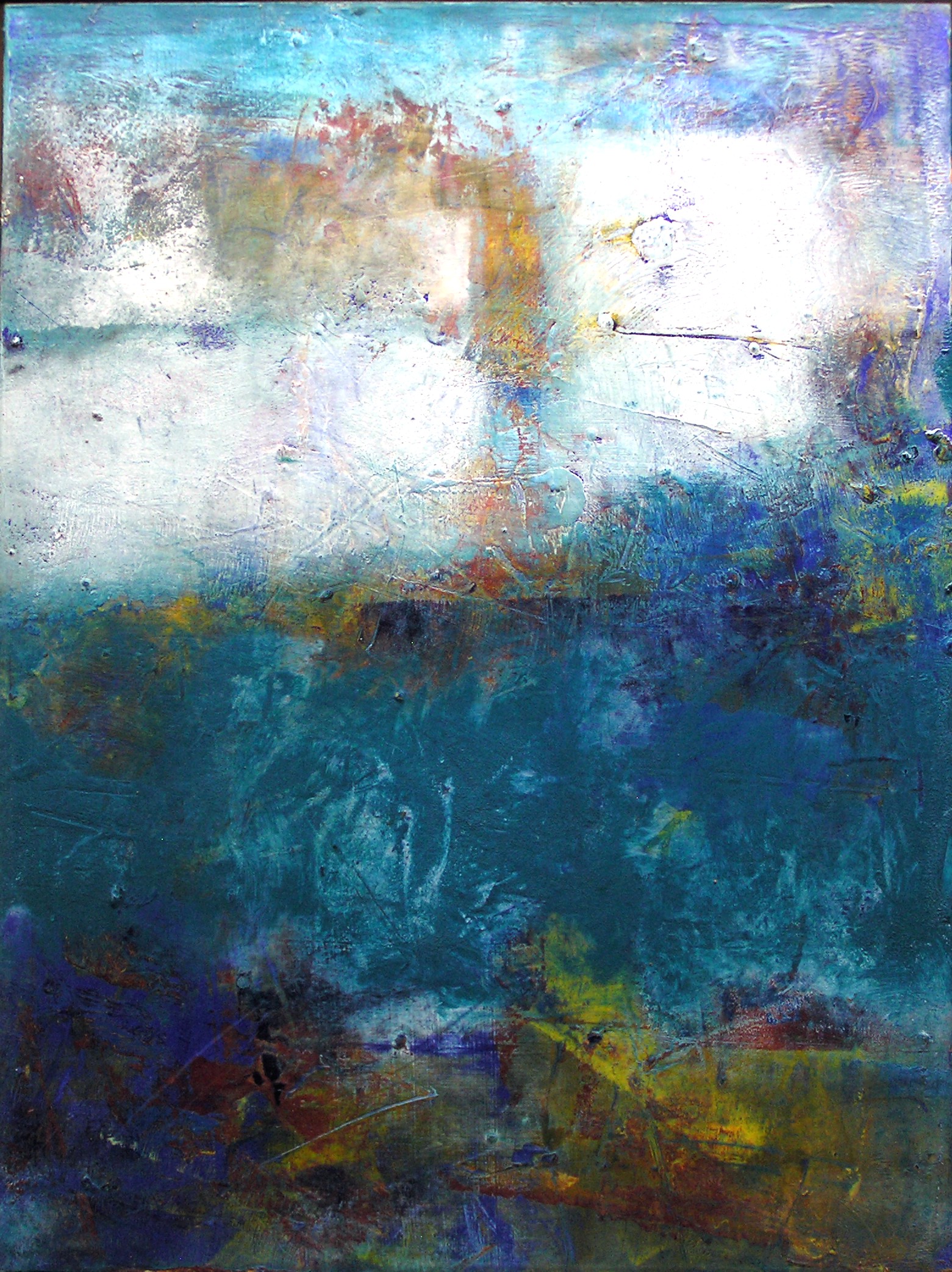 I work in a number of different media including oils, acrylics, watercolors, encaustics and printmaking. Most recently I am exploring the wonderful effects that using oils mixed with cold wax can produce. Working in a number of different media including oils, wax, collage, and printmaking, I create layers both literally and figuratively. I’m using layers, sometimes as many as 8, of contrasting colors of oil paint and cold wax. The mixture of oil paint and cold wax medium is applied in sometimes thick and sometimes thin veils of color using squeegees or rollers which I then scratch with a variety of tools or dissolve with solvents and remove by rubbing or patting with crumpled tissue to create texture and reveal contrasting color.