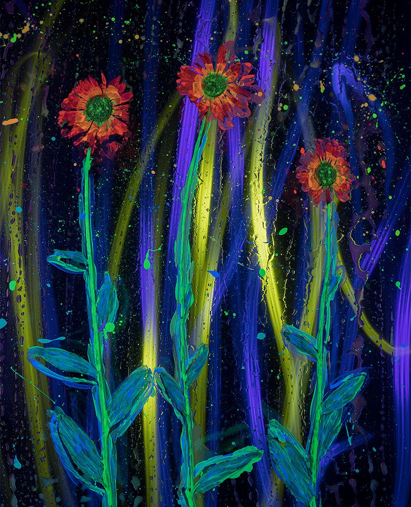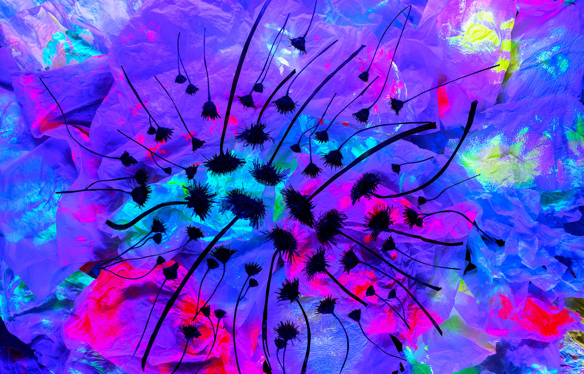 For Steph's HARVEST show he invited 3 friends to show along with his photographic series - YU-VEE, 13 images of dried flowers, painted with UV paints and lit with blacklights.