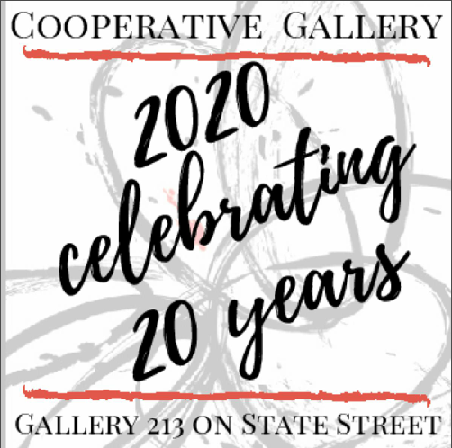 February is the Cooperative Gallery’s 20th Anniversary Show, featuring works from every exhibiting member throughout our history. Opening on Feb. 6th 6-8 pm for an Artists Reception, and First Friday Feb. 7th 3- 9 pm. We will also present the newly organized archives of every show and a digital display of images.