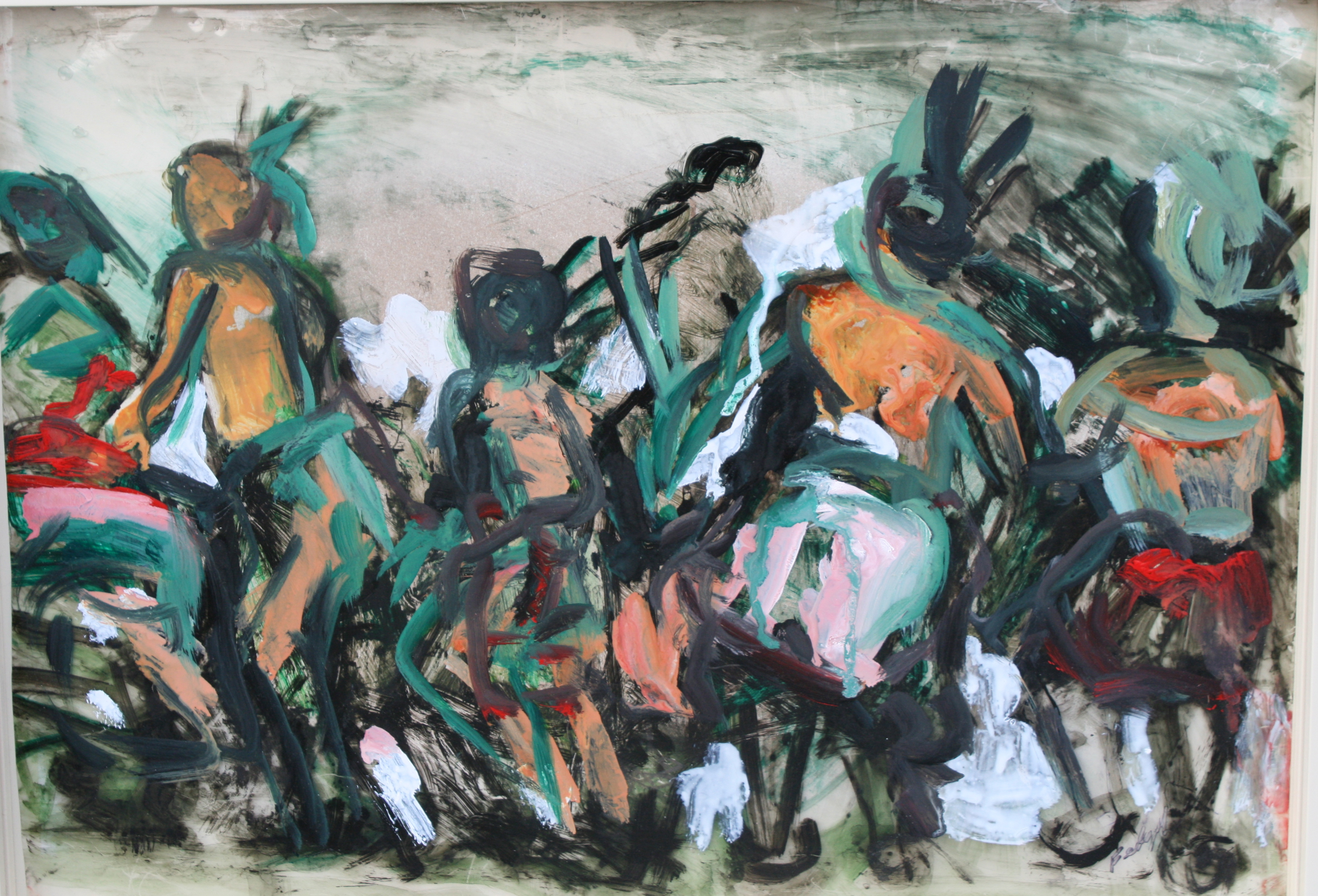Alexandra Davis, who often uses natural objects in her work, explains the theme: “The cyclical nature of the natural world uses what is fallen for its rebirth.” Karen Fedczuk’s oil paintings are based on Native American Dancing observed from a Shinnecock Pow Wow.