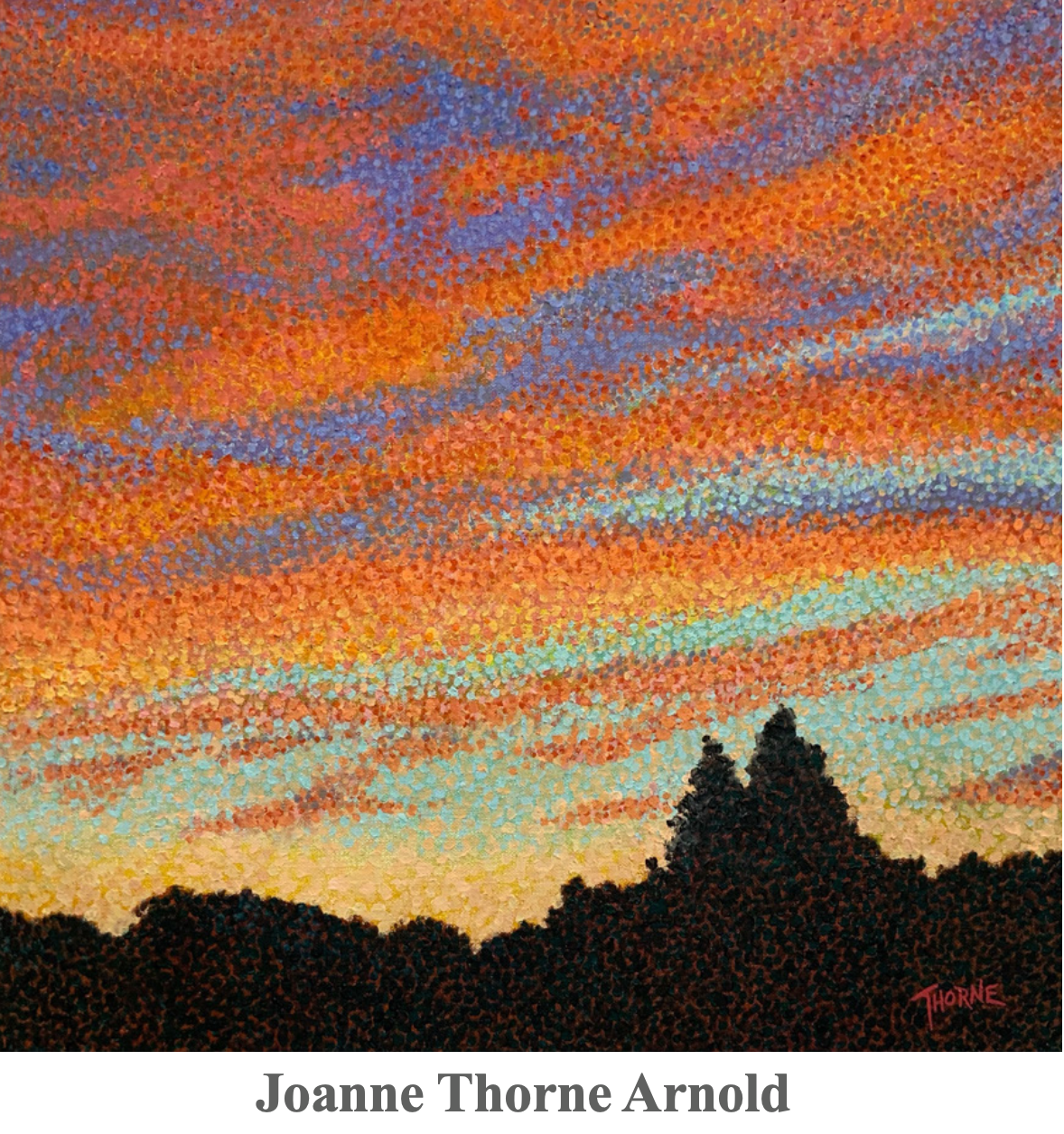 Joanne Thorne Arnold is a Binghamton based oil painter who perceives the sky as a symbol of time and the clouds, its personality. The presented work is all new and conceived during pandemic lock down.